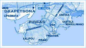 leave from the historic port. Piraeus is to the southwest of Athens, about